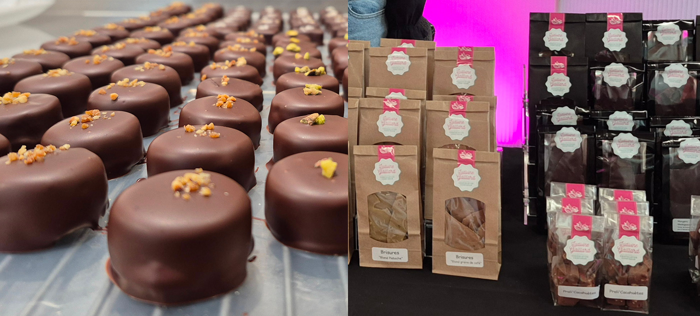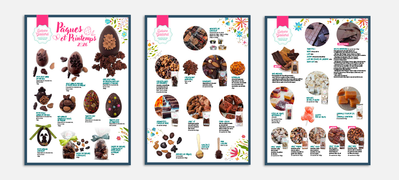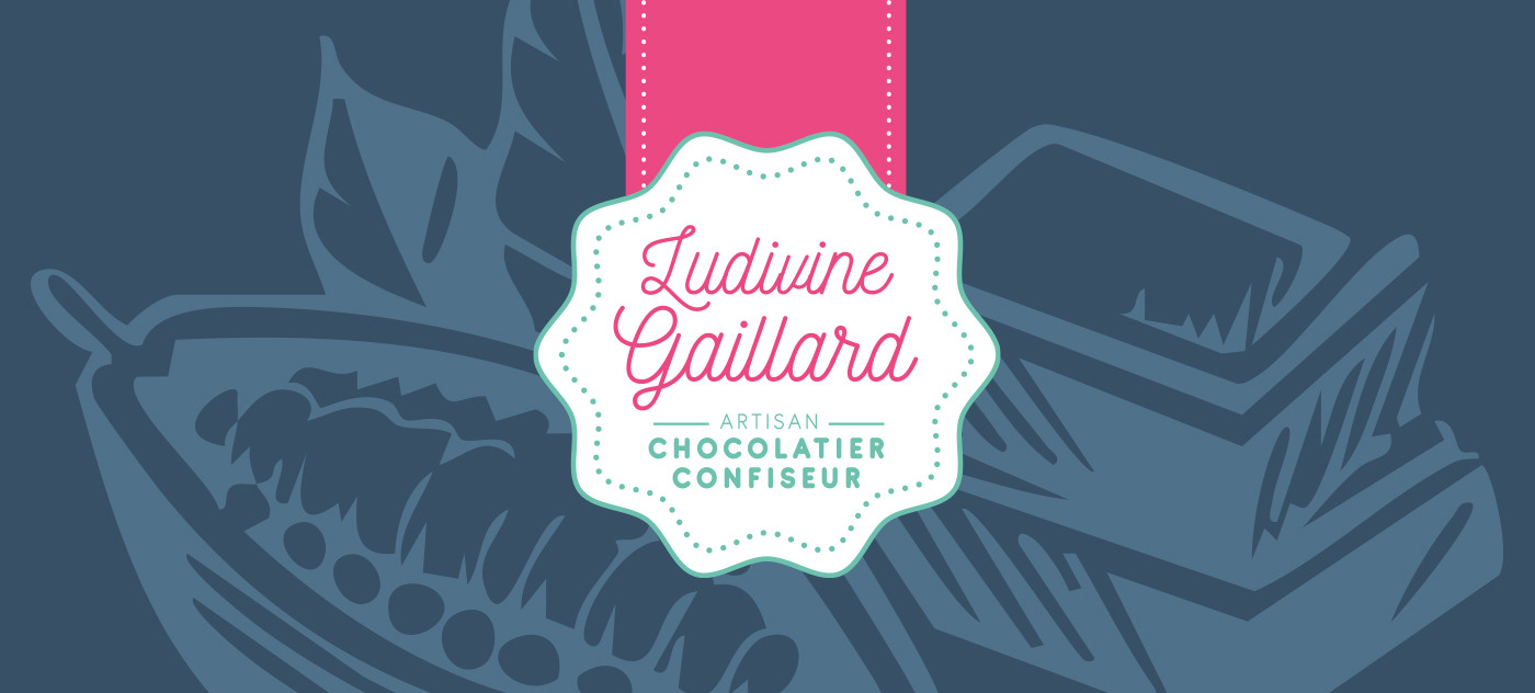 Création de l'identité graphique pour LUDIVINE GAILLARD artisan chocolatier confiseur. Logotype, cartes, et packaging